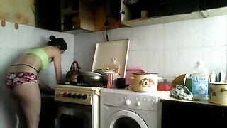 Hidden cam vid of neighbor's all natural wife doing the laundry