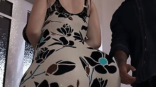 美丽的摩洛伊斯兰解放阵线与一个巨大的屁股清洁厨房,并采取帮助她的优势
