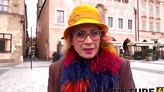 肮脏的捷克奶奶女士z传播腿被搞砸在床上