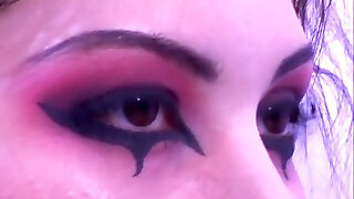 年轻的哥特穿上深红色的唇线笔和戏剧与充足的活泼的海雀