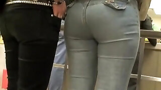 Spycam等待一个美味的臀部后面