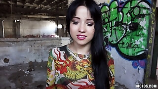 Colorful Russian girl inhales a cock in public for some currency
