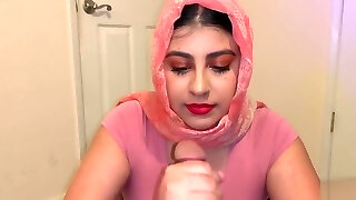 Sneaky stepdad gets blowjob from beautiful Muslim daughter-in-law.