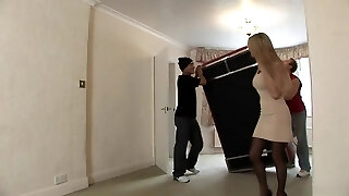 Horny blonde milf with a big, round ass is cuckolding her husband with 2 dark-hued guys