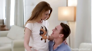 Babe with porcelain skin Lena Anderson is fucked by tanned boyfriend