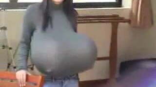 Girl with 3 tits Drills Her Cunt With a Dildo