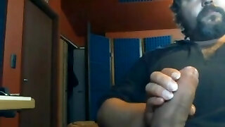 Huge hairy bear jerking a big cock in the converse