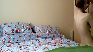Anorexia pigtailed redhead girl has missionary, doggystyle and cowgirl hookup with creampie on the bed.