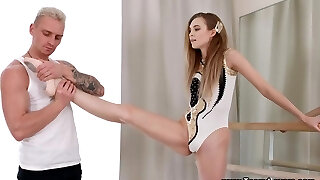 Flexible teen ballerina gets a cumshot on her shaven pussy