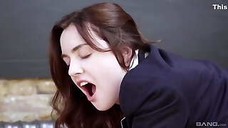 Fabulous looking auburn MILFie prof Brandi Love rides schoolgirl's strong rod