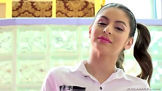 疯狂生动ponytailed coed小鸡尼娜北发现它愉快骑凿