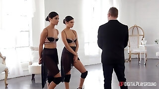 Limber舞者吉安娜迪奥和艾米莉威利斯拧通过一个男人
