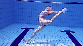 豪华的埃琳娜Proklova再次得到完全裸体在游泳池