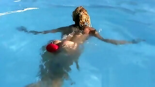 丹妮尔填补她的泳衣在她的外阴在室外独奏别针