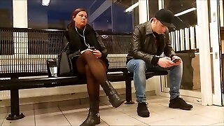 我在一个穿着紧身衣的豪华腿的陌生人面前拔出一个刺,她不介意