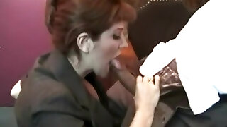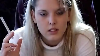 热胖的金发女吸烟,这是脂肪和抚摸着巨大的阴茎