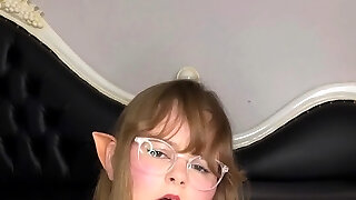 Emo nymph用振动器和cum工作她的poon